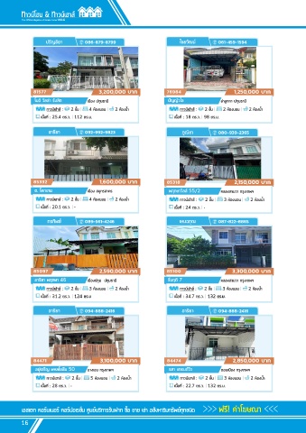 ทาวน์เฮาส์ : 2 ชั้น | 5 ห้องนอน | 2 ห้องนํ้า ทาวน์เฮาส์ : 2 ชั้น | 3 ห้องนอน | 2 ห้องนํ้า