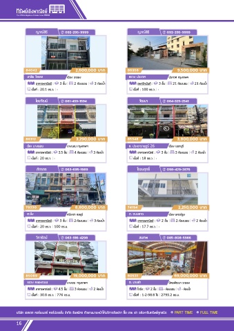 อาคารพาณิชย์ : 3 ชั้น | 2 ห้องนอน | 3 ห้องนํ้า อพาร์ทเม้นท์ : 3 ชั้น | 21 ห้องนอน | 21 ห้องนํ้า